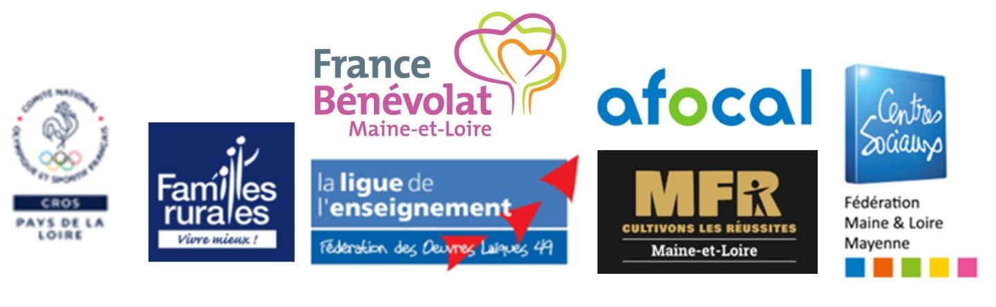 France Bénévolat Maine-et-Loire, la F.O.L 49 - Ligue de l’enseignement, Familles Rurales, le Comité Départemental Olympique et Sportif, AFOCAL, la Fédération Régionale des MFR, la Fédération des Centres Sociaux 49-53.